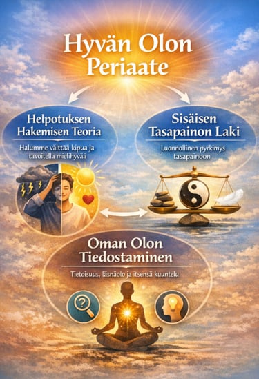 Hyvän olon periaate lähtee ajatuksesta, että ihmisen kaikessa toiminnassa perimmäinen pyrkimys on hyvän olon saavuttaminen. Alitajunta ja hermosto, kokemukset ja tunteet vaikuttavat siihen, miten tätä hyvää oloa haetaan – joskus rakentavilla, joskus haitallisilla tavoilla.